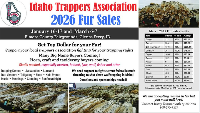 2026 Idaho Trappers Association March 5th-8th Fur Sale Schedule